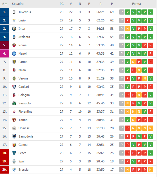 Ecco la classifica attuale:
