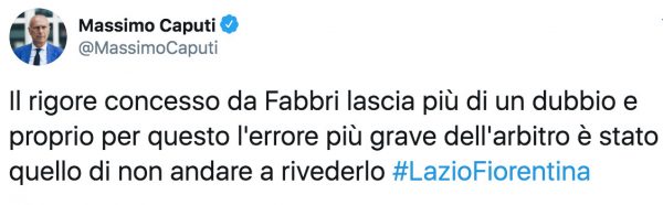Il direttore di gara ha deciso per il penalty senza andare a rivedere l’episodio al VAR. Decisione che ha portato anche al commento del giornalista Massimo Caputi su Twitter: “Il rigore concesso da Fabbri lascia più di un dubbio e proprio per questo l’errore più grave dell’arbitro è stato quello di non andare a rivederlo“.