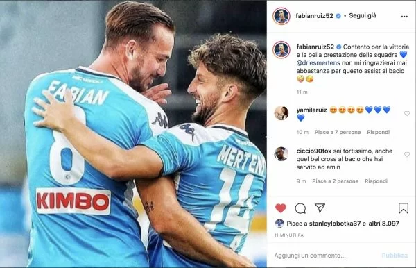 Promessa mantenuta, Mertens mantiene la parola data a Fabian Ruiz, e porta lo spagnolo in barca per l’assist che il numero otto ha confezionato al belga contro la Spal.