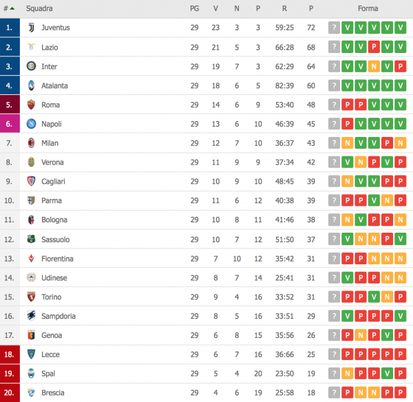 ECCO LA CLASSIFICA: