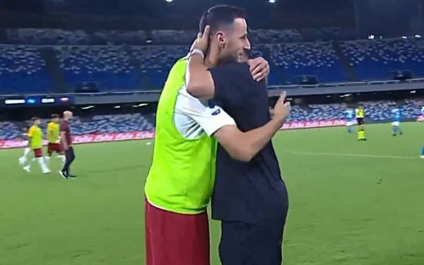 Il tecnico azzurro nel corso del rientro in campo per la ripresa del match ha incrociato Nikola Kalinic, in panchina per la Roma. Il tecnico calabrese ha salutato l’attaccante croato, che è stato un suo giocatore ai tempi del Milan. C’è stato un bellissimo abbraccio tra i due, con Gattuso che gli ha chiesto: “Come stai, grande Nik?”