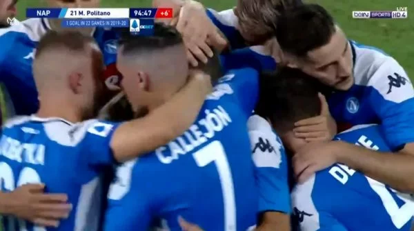 Al termine della delicata gara tra Napoli ed Udinese, Matteo Politano al minuto 95′ inventa una delle sue giocate che i tifosi partenopei aspettavano da tempo per risolvere il match e portare il risultato sul 2-1 finale che consente agli azzurri di portare a casa i tre punti.