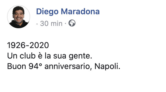 Di seguito gli auguri di D10S al “suo” Napoli: