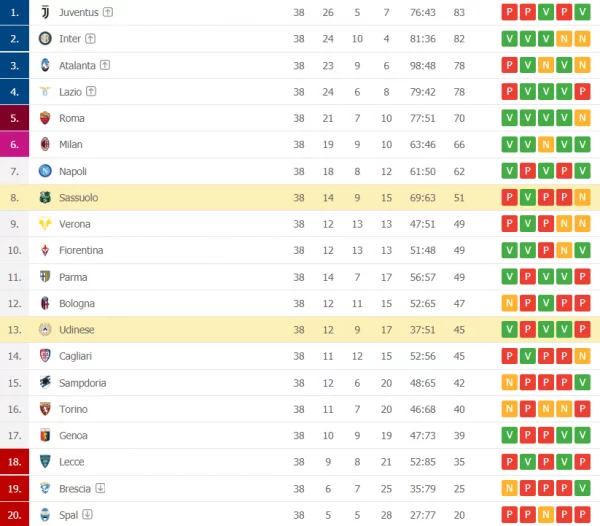 Nelle sfide di oggi, il Genoa ha superato il Verona per 3-0 aggiudicandosi così la salvezza. Questo ha reso inutile il risultato tra Lecce e Parma, che ha visto la perdita dei padroni di casa e conseguente retrocessione in Serie B. Il Bologna ha terminato in parità contro il Torino sull’1-1. Infine, l’Udinese ha vinto in trasferta a Sassuolo grazie ad una rete di Okaka.