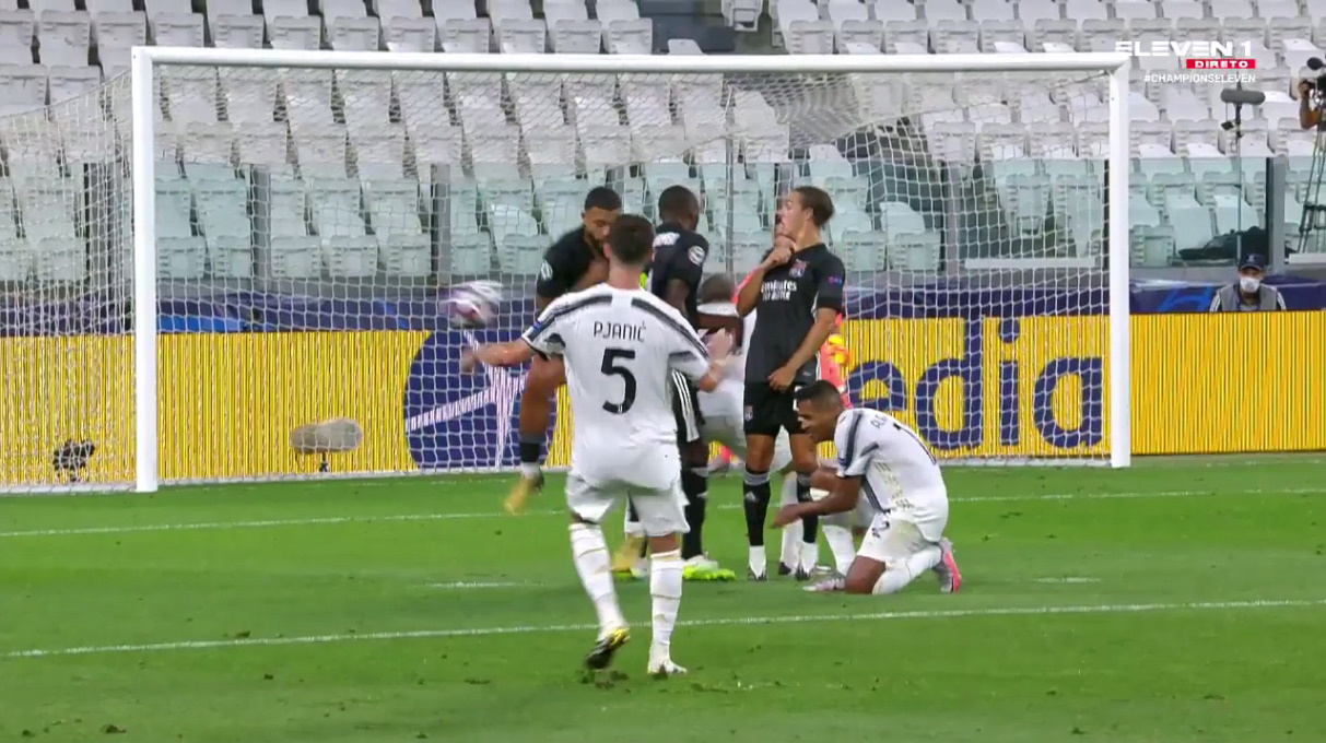 L’arbitro ha fischiato un presunto fallo di mano di Depay su una punizione di Pjanic. Rigore molto dubbio, ma assegnato senza consulti al VAR.