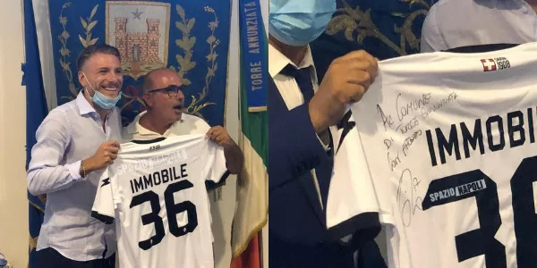 A Immobile è stata poi consegnata una maglia del Savoia, la squadra locale, con il numero 36 e una dedica dalla città di Torre Annunziata.