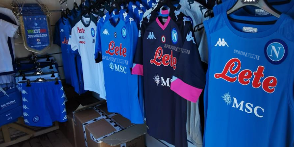 In rosso, colore principale con cui il consumatore la associa. Le nuove divise, insieme a quelle da passeggio, alle canotte da allenamento, sono state esposte negli store sparsi nella città di Castel Di Sangro. Ecco le foto targate SpazioNapoli.