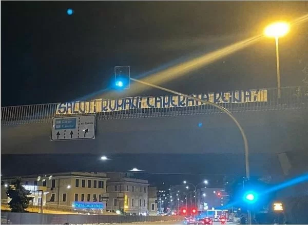Lo striscione shock è stato esposto sul viadotto sopra Corso Francia, di seguito la foto: