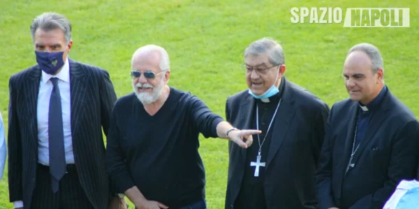 Il Cardinale ha raggiunto la squadra in campo accompagnato dal presidente azzurro, Aurelio De Laurentiis.