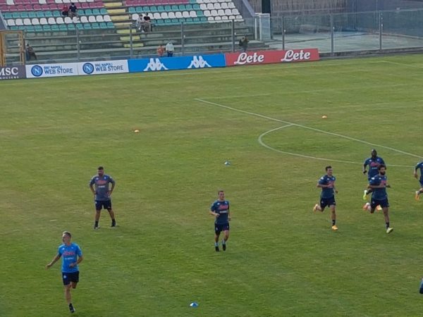 Simpatico siparietto durante l’allenamento mattutino nell’undicesimo giorno di ritiro a Castel Di Sangro per il Napoli. In campo Gattuso si è unito, ormai come di consueto, ai suoi calciatori per prendere parte al torello.