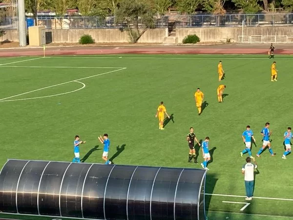 14′ – GOOOOOOL DEL NAPOLIII!!! CIOFFI! Lancio di Ceparano per Altomare, il centravanti azzurro parte in posizione di fuorigioco e lascia il pallone a Cioffi che arriva da dietro, il 10 azzurro arriva a tu per tu con il portiere avversario e lo batte con il destro! 1-0!