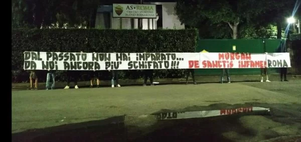 “Dal passato non hai imparato… da noi ancora più schifato!!! Morgan De Sanctis infame”, questo lo striscione choc esposto a Trigoria dai supporters della Roma.