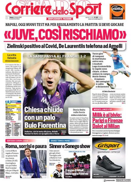 Il quotidiano rivela come, dopo la riscontrata positività di Zielinski al Covid, il presidente del Napoli, Aurelio De Laurentiis, abbia avuto un contatto telefonico con il collega Andrea Agnelli.