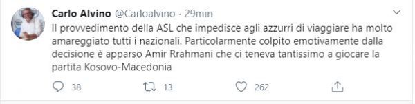 “Il provvedimento della ASL che impedisce agli azzurri di viaggiare ha molto amareggiato tutti i nazionali. Particolarmente colpito emotivamente dalla decisione è apparso Amir Rrahmani che ci teneva tantissimo a giocare la partita Kosovo-Macedonia”.