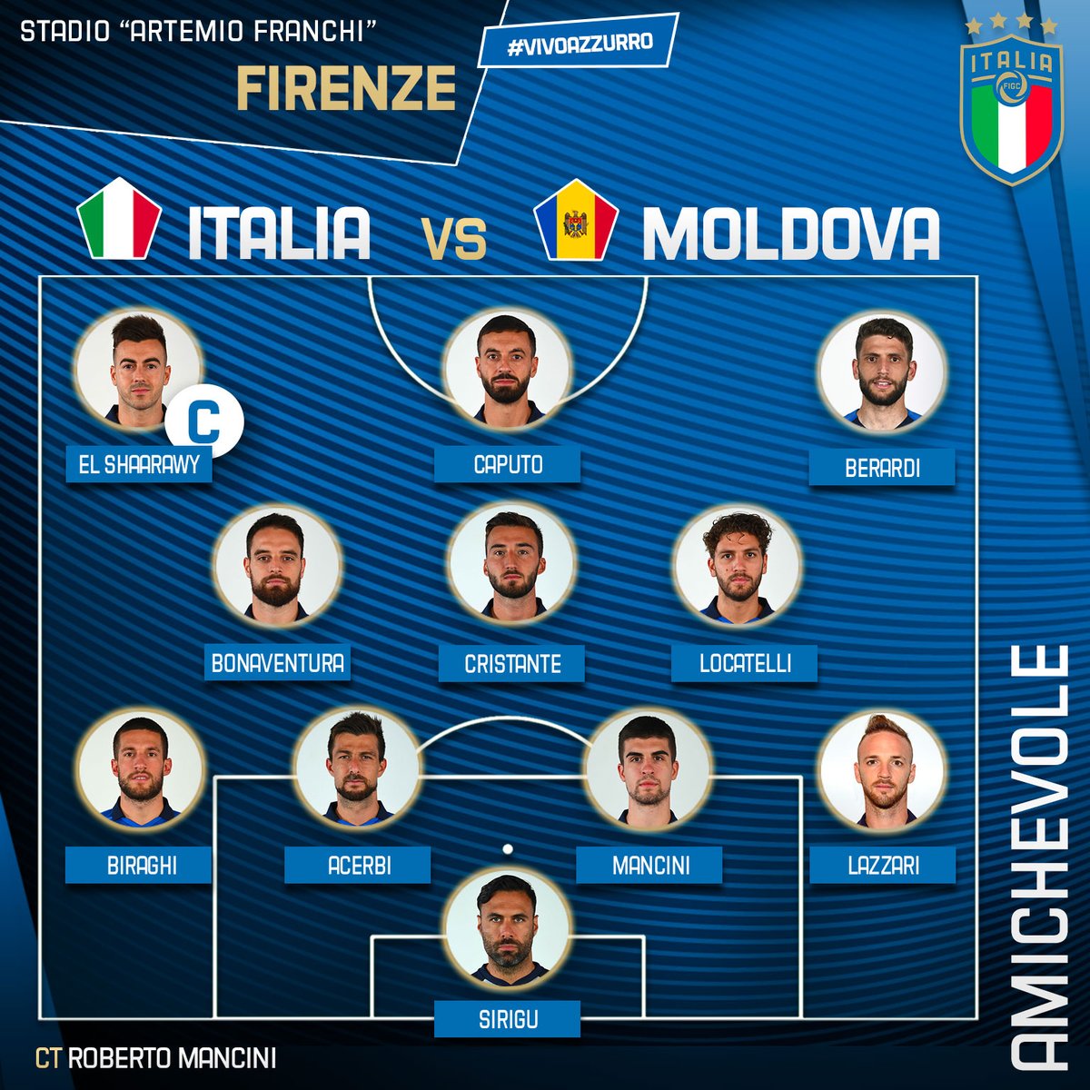 Si giocherà questa sera la gara amichevole tra Italia e Moldova allo stadio “Franchi” di Firenze. Il CT Mancini ha scelto una formazione piuttosto sperimentale per questo impegno.
