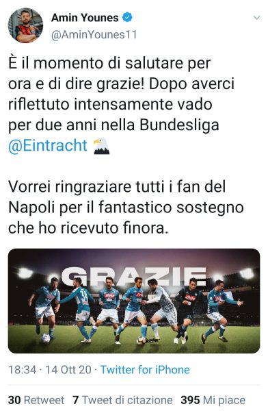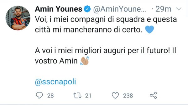 Poi aggiunge: “Voi, i miei compagni di squadra e questa città mi mancheranno di certo. A voi i miei migliori auguri per il futuro! Il vostro Amin“.
