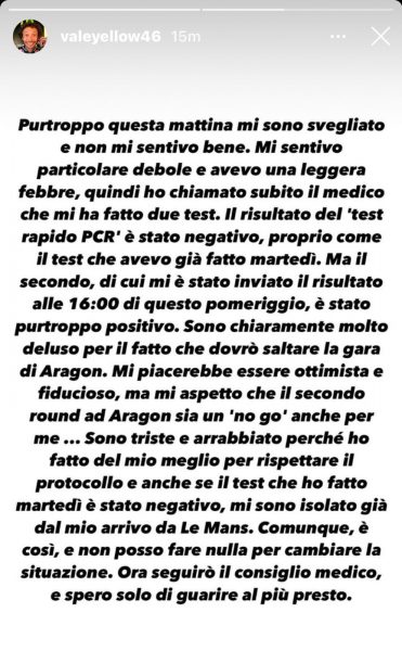 Ad annunciare la positività è stato proprio “Il Dottore” attraverso i suoi profili social. Ecco il messaggio lasciato ai suoi fan pochi minuti fa:
