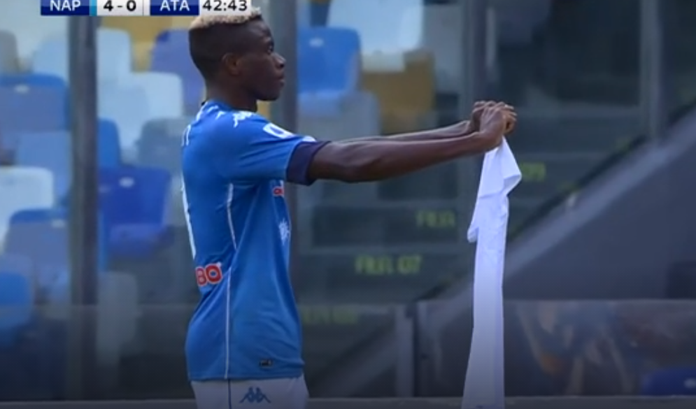 Osimhen espone una maglia con su scritto “End Police Brutality in Nigeria” tradotto “Fermate le violenze della polizia in Nigeria“. La maglia si riferisce ai continui episodi di violenza che si verificano ultimamente in Nigeria.
