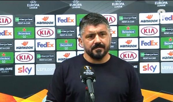 Divertente il finale di intervista a Gennaro Gattuso su Sky Sport. Incalzato da Leo Di Bello a concludere anzitempo una risposta riguardo Lozano, il mister calabrese si è risentito. “Mi stai interrompendo? Fammi finire!” sono state le parole del mister, con il giornalista che si è scusato e ha ridato la parola a Gattuso.