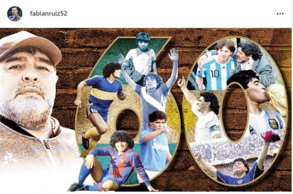 Anche Fabian Ruiz, centrocampista del Napoli, dedica un post su Instagram a Diego Armando Maradona, il quale, ha compiuto oggi 60 anni: