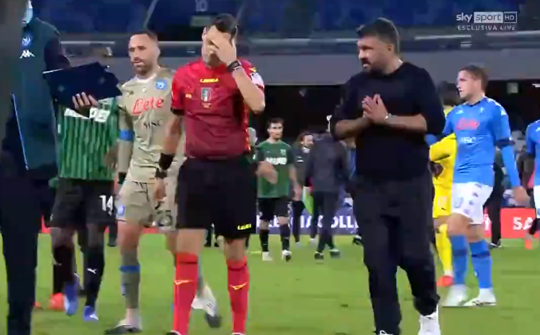 Il Napoli di Gattuso perde la sua prima partita casalinga. Il tecnico non ha compreso la scelta dell’arbitro Mariani di non concedere il rigore per la trattenuta ai danni di Osimhen.