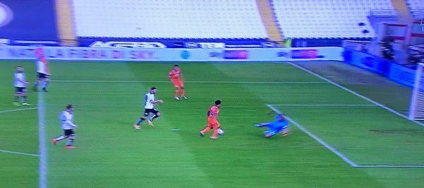 La rete era stata inizialmente annullata per posizione di fuorigioco, ma il VAR ha corretto la decisione dell’arbitro assegnando il gol allo spagnolo. Su Twitter si è scatenata l’ironia del giornalista Paolo Ziliani, dopo le discussioni sulla tolleranza per i fuorigioco di pochi centimetri.