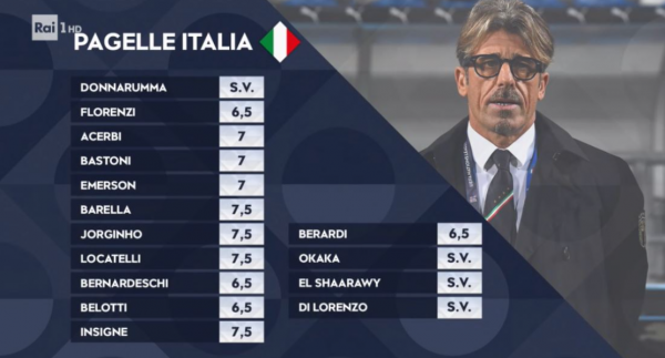 Insigne ha infatti giocato una gran partita, risultando il fulcro del gioco offensivo dell’Italia. Oltre all’assist per il raddoppio di Berardi, infatti, c’è da annoverare una rete annullata e vari tentativi del numero 10. Rai Sport ha deciso di nominare il capitano del Napoli migliore in campo, assegnandogli 7,5 in pagella a fine partita.