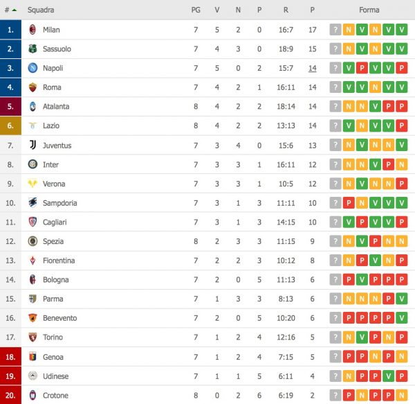 QUESTA È LA CLASSIFICA AGGIORNATA: