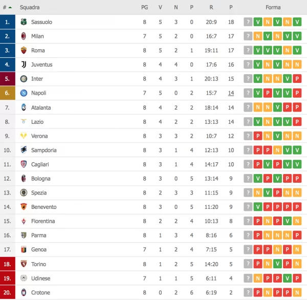 Si sono concluse da poco le sfide del pomeriggio dell’ottava giornata di Serie A. Dopo il successo del Benevento ai danni della Fiorentina, a sorridere sono anche Inter, Roma, Sassuolo e Bologna.