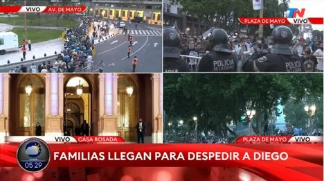 “Alle 5.30 di mattina ora di Buenos Aires la coda verso la presidenziale Casa Rosada dove è esposto il feretro di Diego Armando Maradona è già di proporzioni incontrollabili”