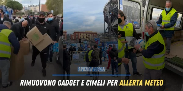 Già in questi minuti, infatti, addetti della Napoli Servizi stanno rimuovendo buona parte dei gadget in virtù dei rovesci previsti nelle prossime ore. Dove finiranno?