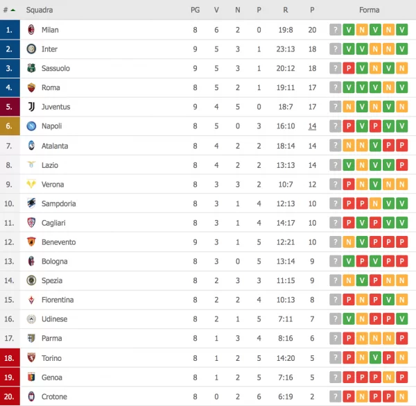 La giornata era stata aperta dal successo dell’Inter per 0-3 sul campo del Sassuolo.