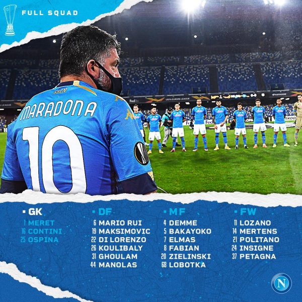 I convocati: Meret, Ospina, Contini, Di Lorenzo, Ghoulam, Koulibaly, Maksimovic, Manolas, Mario Rui, Demme, Elmas, Lobotka, Fabian Ruiz, Zielinki, Bakayoko, Lozano, Mertens, Petagna, Politano, Insigne