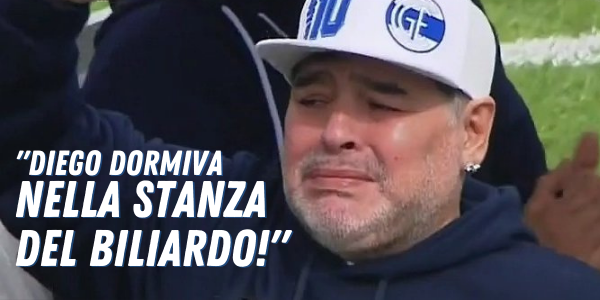 “Maradona in vita aveva posseduto decine di case lussuose, ma nell’ora della morte non stava neanche in una vera camera: lo facevano dormire, quando i dolori e la depressione gli permettevano di riposare, nella stanza destinata al biliardo. Al piano terra. Sistemato alla bell’e meglio, di fianco a un cesso chimico e al cucinotto. Ma una domanda resta: con tanti disinteressati affetti intorno, che ci faceva Maradona da solo in quello squallore?”.