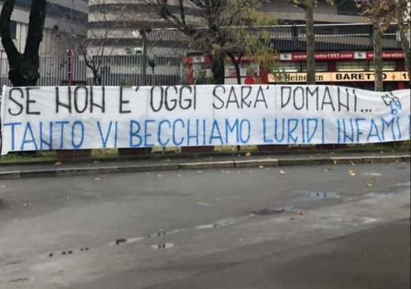 Se non è oggi sarà domani… tanto vi becchiamo luridi infami“.