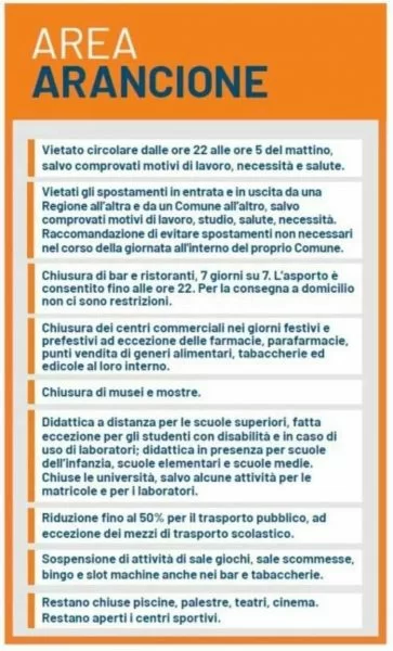 1. Confermate tutte le misure vigenti alla data odierna per effetto di disposizioni statali – ivi comprese quelle di cui all’art.2 del DPCM 3 dicembre 2020 (cd. “zona arancione”) – nonché regionali (Ordinanza n. 96 del 10 dicembre 2020 su controlli degli arrivi e limitazioni alla mobilità sul territorio regionale) ;