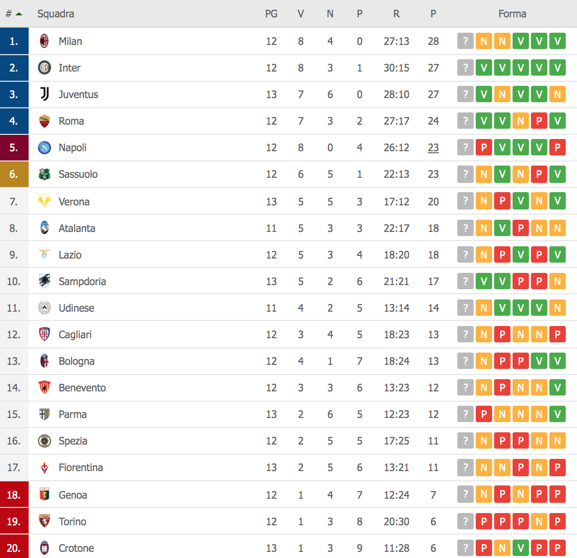 Sono terminati gli anticipi della tredicesima giornata di campionato in Serie A. Ad aprire erano state Fiorentina e Verona finita 1-1, con due reti su rigore: prima Veloso per l’Hellas e poi Vlahovic per i viola. Prandelli ancora alla ricerca del primo successo in campionato sulla panchina dei gigliati. Nel pomeriggio netta vittoria della Sampdoria ai danni del Crotone per 3-1: reti di Damsgaard, Jankto e Quagliarella; mentre per gli ospiti gol della bandiera per Simy su rigore.