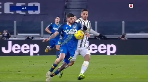 “Il gol dell’Udinese annullato per tocco di mano fortuito nella costruzione, l’anno scorso era irregolare. Ma quest’anno hanno cambiato: si valuta influente il tocco di mano fortuito solo nell’immediatezza del gol, quindi era da convalidare il gol. Qui @LucaMarelli72“
