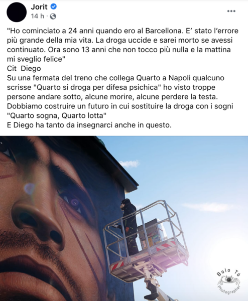 MURALES MARADONA, TERMINATA L’OPERA DI JORIT A QUARTO