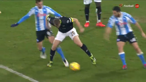 Lo Spezia pareggia la partita col Napoli su rigore, ma prima del goal c’era un fallo su Petagna non segnalato dall’arbitro e dal Var.