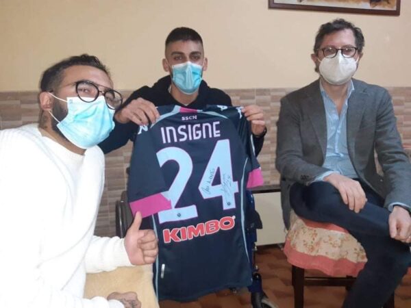 Una foto postata sui social mostra il giovane in compagnia del consigliere comunale dei Verdi, Francesco Emilio Borrelli, e la maglia autografata dello stesso Insigne.