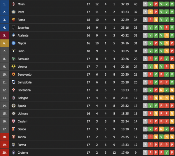 Il Napoli può agganciare i giallorossi in classifica a 34 punti, che si trova attualmente al sesto posto in classifica a tre punti dalla Roma. Se vince contro la Fiorentina tornerebbe momentaneamente al terzo posto, in attesa del match big tra Inter e Juventus.