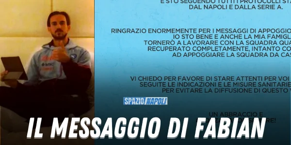 Il calciatore del Napoli, Fabian Ruiz, ha pubblicato un messaggio sui suoi profili social a seguito della riscontrata positività al Coronavirus. Ecco quanto evidenziato: