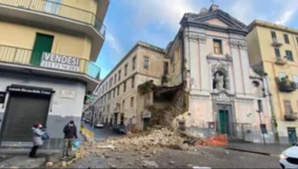 Crollo Napoli oggi, cede la facciata esterna della chiesa