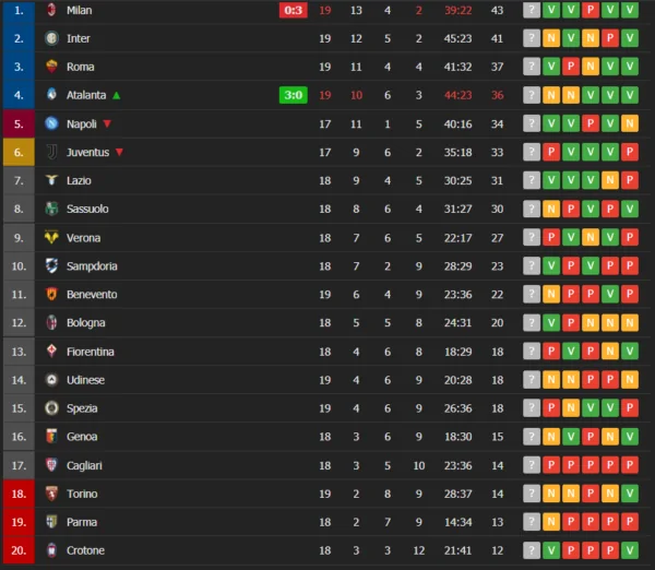 Crolla il Milan in casa contro l’Atalanta. I padroni della Serie A subiscono una sonora sconfitta a San Siro dove si è vista forse la miglior Atalanta della stagione. Nel primo tempo è Romero al 26′ ad aprire le marcature, nella ripresa Ilicic prima su calcio di rigore e Zapata poi al 77′ chiudono la gara e regalano i tre punti a Gasperini.