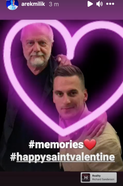 Milik ha pubblicato una foto a tema “San Valentino” con il presidente del Napoli. I due sono anche avvolti da un cuore. Una chiara provocazione per come sono finiti i rapporti tra i due.