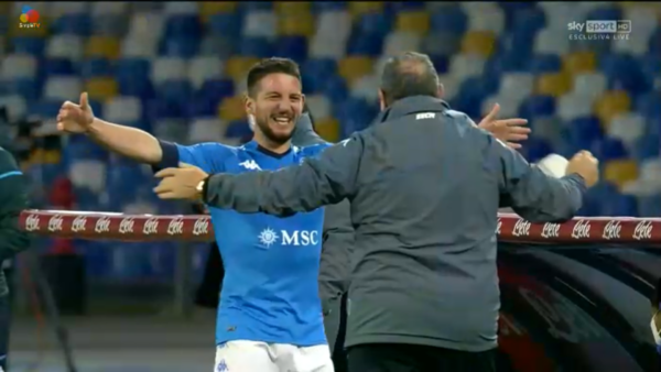 Dries Mertens ha sbloccato il match contro il Benevento al Diego Armando Maradona. Al momento dell’esultanza è corso ad abbracciare lo storico magazziniere del Napoli, Tommaso Starace che oggi compie gli anni!