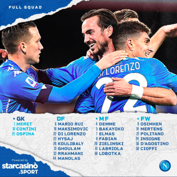 Il Napoli ha diramato la lista ufficiale per la gara di stasera contro il Bologna programmata per le 20:45 allo Stadio Maradona. Questi i convocati da Rino Gattuso, che ritrova la squadra quasi al completo dopo un lungo periodo di emergenza. In attacco pesano ancora le assenze di Lozano e Petagna. Queste le scelte: