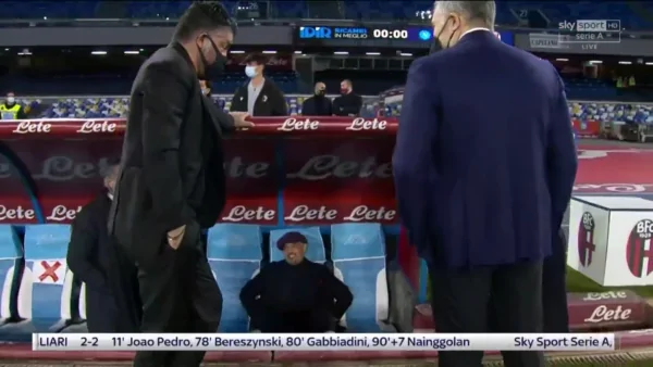Clima tranquillo nel prepartita di Napoli-Bologna, i due allenatori Gattuso e Mihajilovic infatti hanno scambiato due chiacchiere prima del fischio d’inizio, a testimonianza del bel rapporto che lega i due ex calciatori.