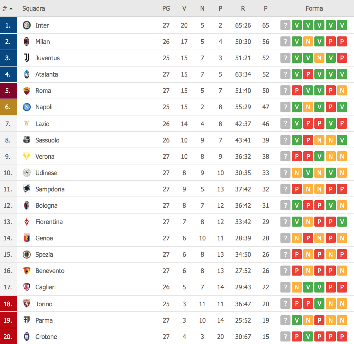 Le gare del pomeriggio hanno visto l’Inter cogliere tre punti fondamentali per la corsa scudetto: espugnato lo stadio del Torino per 1-2 con le reti di Lukaku su rigore e Lautaro Martinez, mentre per i granata è andato a segno Sanabria. Pesante ed inaspettato, invece, il K.O. della Roma che viene battuta per 2-0 dal Parma: gol di Mihaila ed Hernani su rigore. Risultato importante in chiave Champions League con il Napoli che, vincendo il posticipo con il Milan, potrebbe agganciare i giallorossi in classifica.